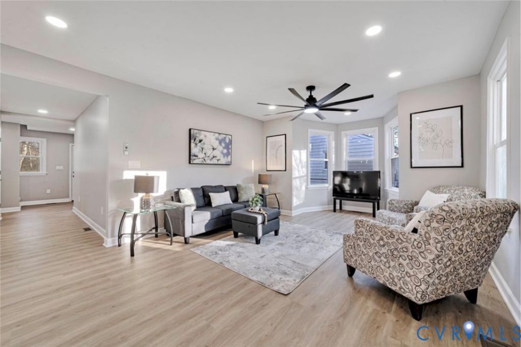 Welcome home to this beautifully rebuilt 1,846 sq ft retreat nestled in a quiet Henrico County neighborhood. Thoughtfully redesigned from the floor joists up, this 4-bedroom, 3.5-bath home features two spacious primary suites, an open floor plan ideal for entertaining, and high-end finishes throughout. Step inside to find new LVP flooring, fresh paint all throughout, and a bright, inviting main level that includes a generous family room, dining area, and a stunning kitchen complete with leathered granite countertops, custom cabinetry, and new stainless-steel appliances. The main-level primary suite offers convenience and comfort with ceramic tile in the ensuite bath. Upstairs, you'll discover three additional bedrooms with plush carpet, ceramic-tiled bathrooms, including a second primary suite, two nicely sized bedrooms, and a third full bath. An additional flex area, perfect for an office, playroom, or gaming space that adds even more versatility, along with easy access to the laundry area. Outside, enjoy year-round comfort with new dual-zone HVAC systems (2025) and relax or entertain on the newly built platform deck. This fully updated home also features a new roof, new energy-efficient windows, and a new hot water tank (2025), providing peace of mind for years to come. A freshly paved, oversized driveway provides ample parking. Perfectly located just minutes from shopping, downtown Richmond, and Interstates 95, 64, and 295, this home blends contemporary living with unmatched convenience. Whether you're a busy family or a professional seeking quick access to the city, this fully rebuilt home offers the ideal combination of space, style, and suburban comfort.